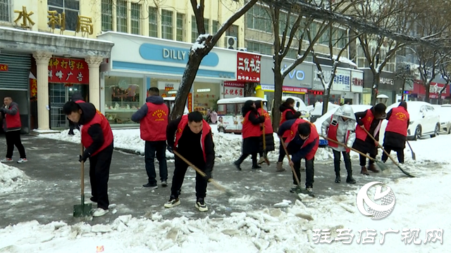 2月21日,为确保道路畅通安全、群众出行方便,上蔡县县直各单位和城区各中小学校以雪为令,积极组织志愿者在各责任路段开展清雪除冰行动。