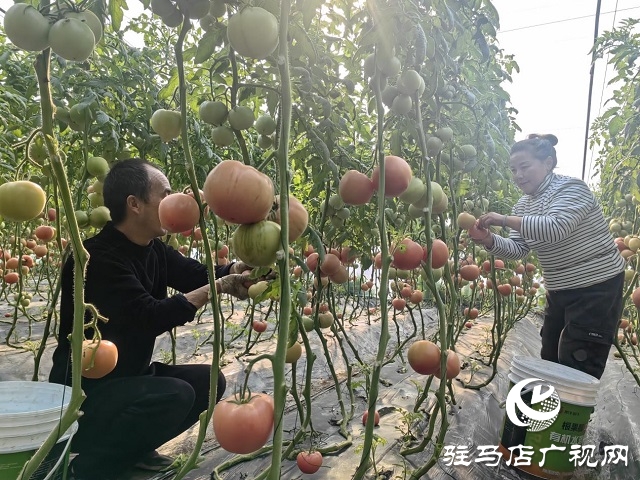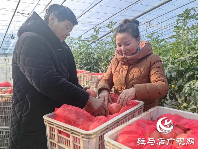1月11日,记者走进驻马店市驿城区水屯镇田庄村西红柿温室大棚,红绿相间的西红柿圆润饱满。眼下,棚内的西红柿已进入成熟期,种植户黄大勇和杨花荣及前来帮忙的村民们正忙着为客户采摘、挑选、装箱。