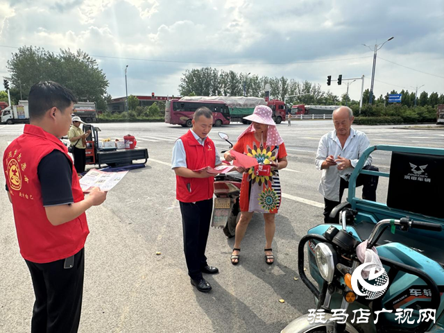 8月7日,驿城区朱古洞乡平安建设办公室工作人员及辖区志愿者深入群众开展反邪教宣传教育活动,努力营造文明、平安、法治的良好氛围。