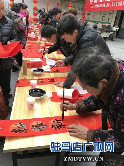 【驻马店广视网讯】(记者 孔莉 实习 周鑫易)1月9日上午,由共青团驻马店市委主办、驿城区西园街道办事处、驿城区团委、市青年书法家协会共同承办的的“迎新春-送福进万家”义写春联活动在西园街道办事处前王社区举行。数十名书法家们现场挥毫泼墨,提前为社区群众送上新春的祝福,受到群众的欢迎。