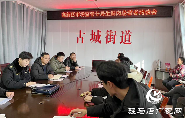 为进一步强化生鲜肉市场监管,促进经营户守法诚信经营,营造辖区内安全放心的生鲜肉消费环境,1月11日,驻马店市市场监管局高新区分局召开生鲜肉经营户约谈会,集中约谈了辖区猪肉、牛羊肉经营户,大中型超市负责人等。