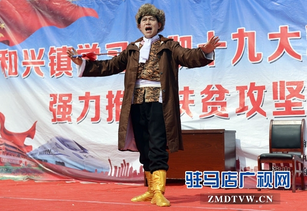 据了解,此次党的“十九大”精神文艺宣传队巡演走基层活动,由和兴镇党委、镇政府主办,和兴镇扶贫攻坚办公室、文化服务中心承办,和兴镇扶贫攻坚宣传文化艺术团编排演出。以“和兴镇学习贯彻“十九大”精神 强力推进脱贫攻坚”为主题,以“政策宣讲+文艺扶贫+事迹报告+技术培训+法制讲座”为主要内容的“大宣讲”活动。活动中宣讲团把全镇表彰的先进典型事例和群众身边发生的脱贫攻坚故事编成节目以群众喜闻乐见的形式广泛宣传。