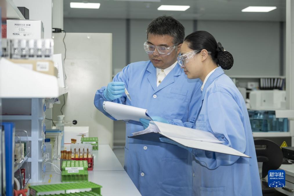 8月30日,上海海关所属浦东海关关员在徕博科医药研发(上海)有限公司对研发用设备进行现场监管。新华社发(谢宗赢 摄)