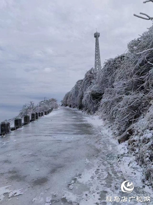 12月18日,驻马店老乐山因低温造成公路严重冰冻,盘山公路上都结了厚厚的冰层,值班车辆上不去,为按时到达位于驻马店老乐山顶的驻马店广播电视发射台,工作人员小心翼翼沿着道路边缘向上走,接替上周值班的同事下山休息。