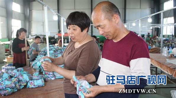 陈杰和村妇联主任陈春荣在村扶贫车间