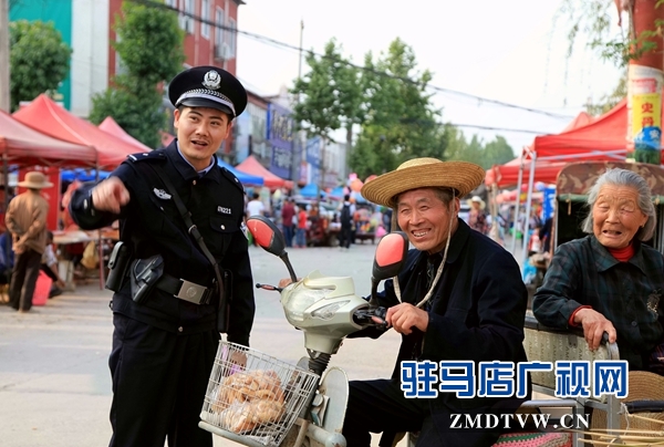 图为该局芦庙派出所民警在庙会现场巡逻中帮助群众时的情景。