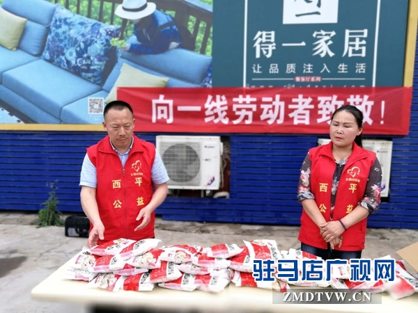 【驻马店广视融媒讯】(记者 武帅)5月1日,西平公益志愿者协会组织爱心企业慰问一线环卫工人,并给他们送去了慰问品。