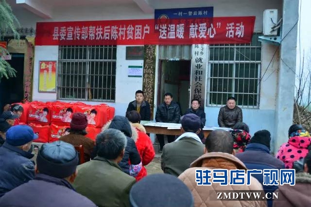 【驻马店广视融媒讯】(通讯员 肖喜锋)寒冬送温暖,真情暖人心。12月25日上午,驻马店县委宣传部帮扶后陈村贫困户“送温暖 献爱心”活动举行,为贫困群众送去温暖和关怀,以实际行动贯彻全县脱贫攻坚“冬季行动”有关要求。