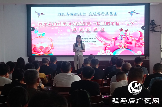 8月29日,西平县柏苑街道举办2025年“我们的节日·七夕”诗词朗诵会,八十余名干部职工齐聚一堂,共同品味七夕传统文化的深厚内涵。