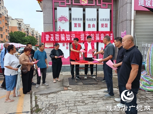 9月10日,为遏制针对老年人的电信诈骗,提高其防骗能力,西平县柏城街道平安办走进建设路栗庄新型社区,开展预防老年人反电诈宣传活动,获群众热烈欢迎。