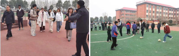 走进驻马店市第五十九小学,黄淮学院师生代表便被校园内的劳动实践基地和充满童趣的活动区域所吸引,优美雅致的校园环境令人印象深刻。恰逢课间,看到孩子们在操场上进行踢足球、跳绳、丢沙包等活动,师生代表主动融入其中,与孩子们手拉手互动。欢快的笑声回荡在校园里,迅速拉近了彼此的距离,也为后续交流营造了轻松融洽的氛围。
