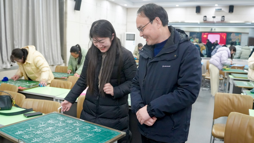 粉笔与黑板摩擦发出清脆声响,宛如奏响一支悠扬的乐曲。有的教师笔力苍劲,笔画间透出扎实的功底;有的风格端庄秀丽,字里行间洋溢着儒雅气质,让诗句更显灵动;还有的运笔飘逸洒脱,在艺术韵味中为诗歌增添了一份独特的诠释。