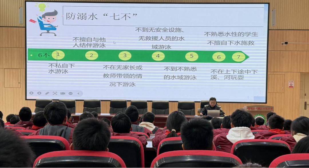 宣讲中,孙警官紧扣青少年成长实际,用通俗易懂的语言、贴近生活的案例,围绕学习的意义与价值、未成年人享有的权利、防溺水、校园欺凌等核心内容展开讲解。
