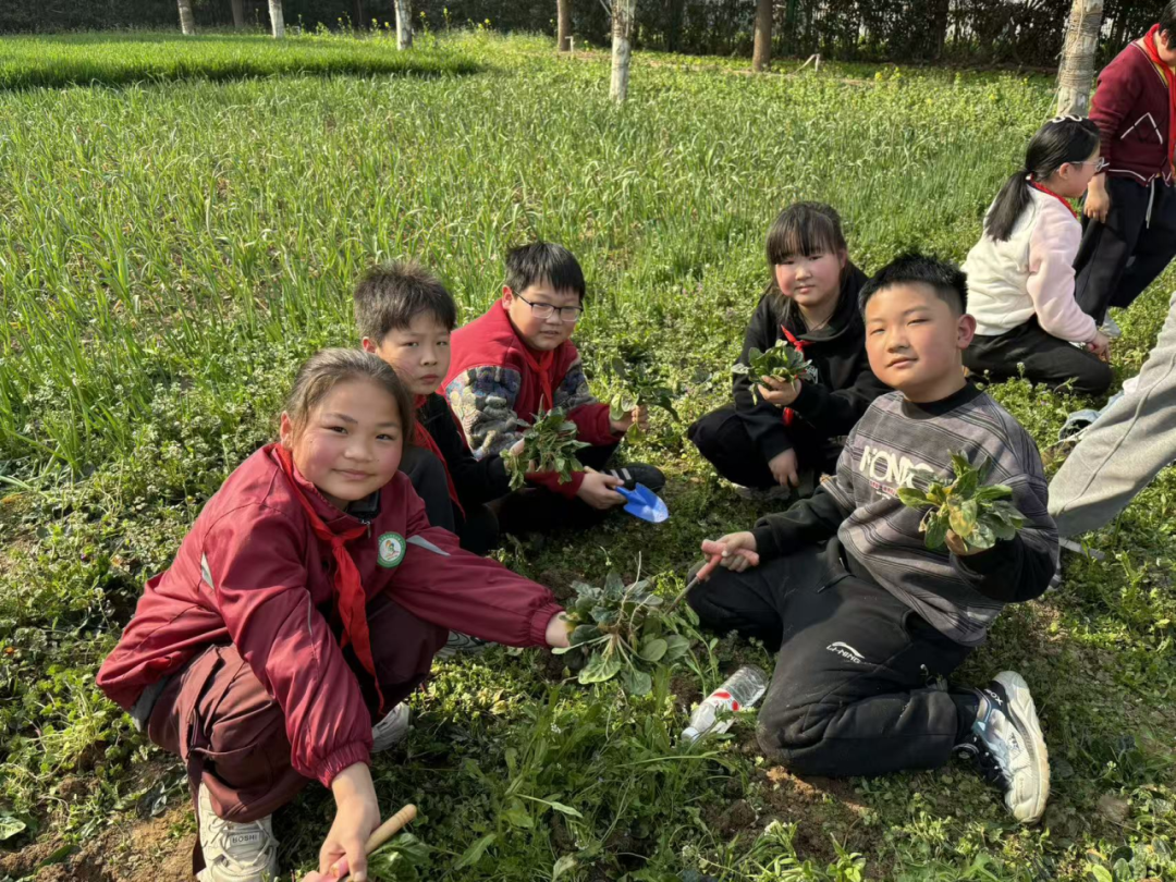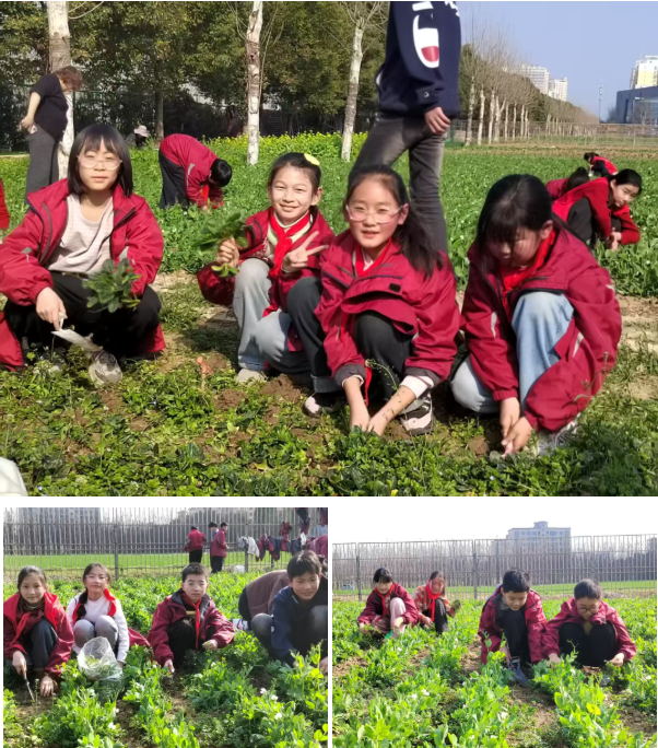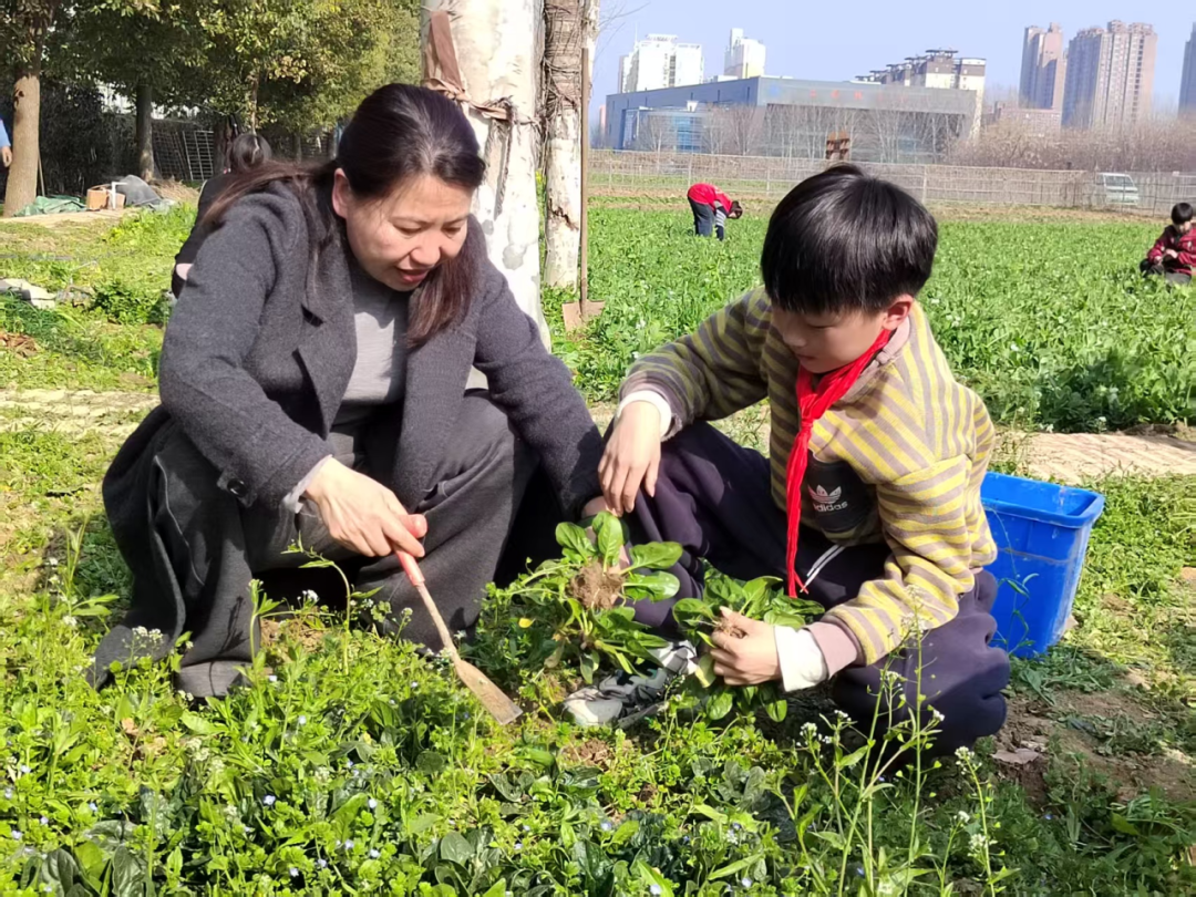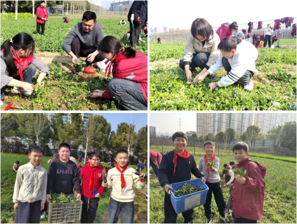 同学们化身“小小农夫”,在领导、老师与家长志愿者的悉心指导下,手持小工具认真劳作,俯身采摘鲜嫩菠菜、细心清除田间杂草,动作虽略显生疏,却专注认真、热情满满。大家分工协作、互帮互助,你挖菜、我装筐,你除草、我递工具,欢声笑语洒满田间地头。