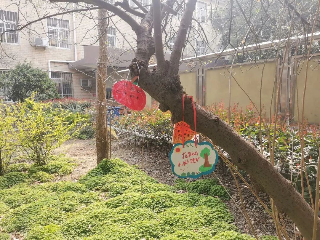 一块块凝聚着劳动成果的名牌被挂上枝头,这不仅是一次手工劳动,更是一堂生动的自然课、审美课。