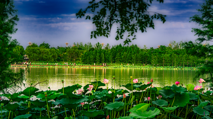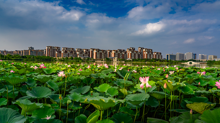 2025年6月27日,河南省驻马店市遂平县城南新区,草木葱葱,荷花盛开,充满了生机与活力,晕染出最鲜活的夏日盛景。图为多彩夏日。赵建明 摄