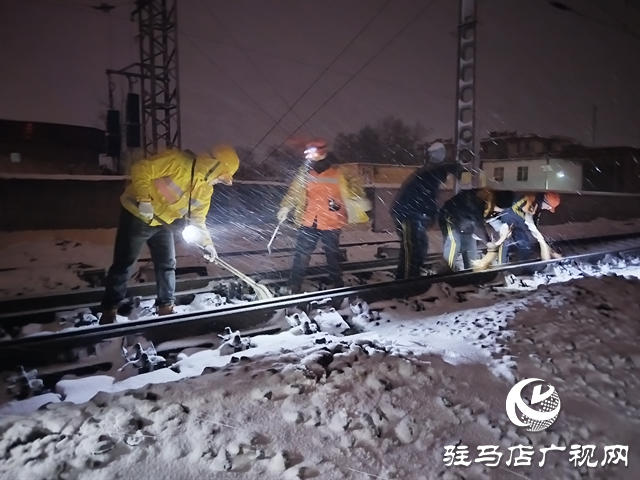 面对雨雪天气,该段第一时间启动应急预案,立即进入战备状态。管内驻马店、明港、确山、遂平等车站联合工务、电务等部门组织100余名除雪人员集结到位,进入提前分工好的扫雪点,24小时不间断对道岔积雪进行清扫,做到随下随扫,有力确保了风雪天气下的行车安全。