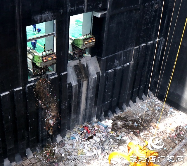 记者在现场看到,一辆辆垃圾车鱼贯而入,缓缓经过地磅平台,驶向高架通道,进入卸料大厅,在现场管理人员的指挥下,垃圾车将满载的垃圾卸入巨大的混凝土储存池内。在垃圾池上方,2台大型抓斗吊车正在工作人员娴熟的操作下对垃圾进行搬运、搅拌、倒剁和堆放,为吊装入炉焚烧做着准备。